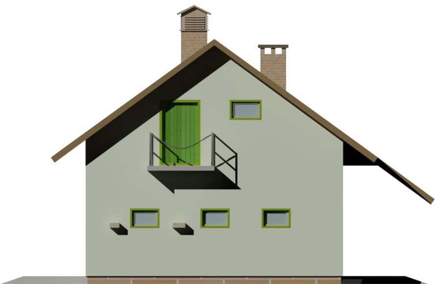 Graficzne opracowanie rzutów poglądowych widocznych na karcie projektu zostało wykonane przez Extradom.pl. Prezentowane przez Extradom.pl wizualizacje wykonane zostały przez autora projektu i należy poczytywać je jedynie za przykład i propozycję wykończenia, wizję architektoniczną autora projektu. Ostateczne wykończenie budynku może nastąpić na wiele sposobów. Szczegółowe rozwiązania zastosowane w oferowanej dokumentacji - w tym również ilość, lokalizacje i wygląd okien, drzwi, kominów - mogą w niewielkim stopniu różnić się od prezentowanej wizualizacji budynku.