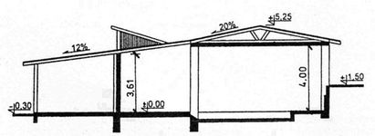 Ściany zewnętrzne: Konstrukcja murowo - szkieletowa. Ściany warstwowe.. Dach: Kat nachylenia 11 stopni. Nad komorami wiązar deskowy, nad sortownią stropodach deskowy, ocieplony, kryty papą.. Poziom kalenicy: 5,55 m od terenu. Dodatkowe informacje: Wentylacja komór mechaniczna i grawitacyjna. Zapotrzebowanie energii elektrycznej: 2050 kWh/rok. Zapotrzebowanie wody: 250 dm3/d. Produkcja ścieków: 250 dm3/d.