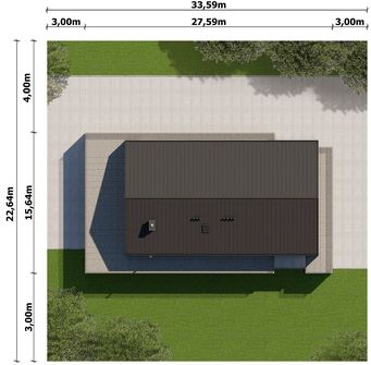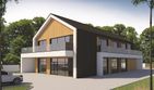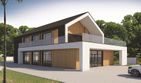 Graficzne opracowanie rzutów poglądowych widocznych na karcie projektu zostało wykonane przez Extradom.pl. Prezentowane przez Extradom.pl wizualizacje wykonane zostały przez autora projektu i należy poczytywać je jedynie za przykład i propozycję wykończenia, wizję architektoniczną autora projektu. Ostateczne wykończenie budynku może nastąpić na wiele sposobów. Szczegółowe rozwiązania zastosowane w oferowanej dokumentacji - w tym również ilość, lokalizacje i wygląd okien, drzwi, kominów - mogą w niewielkim stopniu różnić się od prezentowanej wizualizacji budynku.