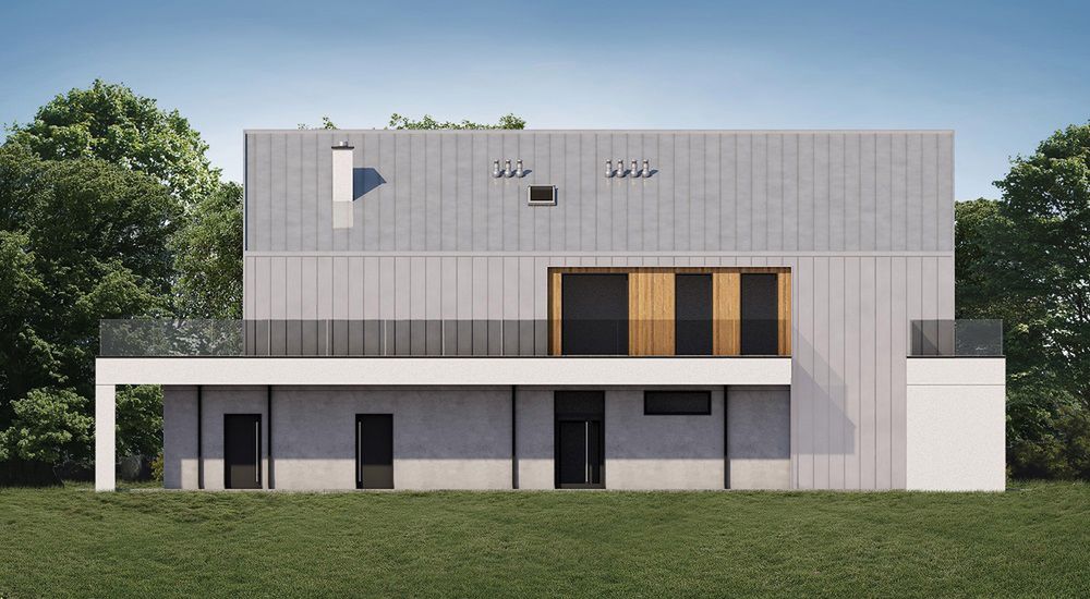 Graficzne opracowanie rzutów poglądowych widocznych na karcie projektu zostało wykonane przez Extradom.pl. Prezentowane przez Extradom.pl wizualizacje wykonane zostały przez autora projektu i należy poczytywać je jedynie za przykład i propozycję wykończenia, wizję architektoniczną autora projektu. Ostateczne wykończenie budynku może nastąpić na wiele sposobów. Szczegółowe rozwiązania zastosowane w oferowanej dokumentacji - w tym również ilość, lokalizacje i wygląd okien, drzwi, kominów - mogą w niewielkim stopniu różnić się od prezentowanej wizualizacji budynku.