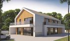 Graficzne opracowanie rzutów poglądowych widocznych na karcie projektu zostało wykonane przez Extradom.pl. Prezentowane przez Extradom.pl wizualizacje wykonane zostały przez autora projektu i należy poczytywać je jedynie za przykład i propozycję wykończenia, wizję architektoniczną autora projektu. Ostateczne wykończenie budynku może nastąpić na wiele sposobów. Szczegółowe rozwiązania zastosowane w oferowanej dokumentacji - w tym również ilość, lokalizacje i wygląd okien, drzwi, kominów - mogą w niewielkim stopniu różnić się od prezentowanej wizualizacji budynku.