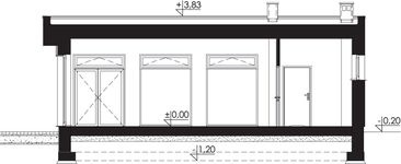 Graficzne opracowanie rzutów poglądowych widocznych na karcie projektu zostało wykonane przez Extradom.pl. Prezentowane przez Extradom.pl wizualizacje wykonane zostały przez autora projektu i należy poczytywać je jedynie za przykład i propozycję wykończenia, wizję architektoniczną autora projektu. Ostateczne wykończenie budynku może nastąpić na wiele sposobów. Szczegółowe rozwiązania zastosowane w oferowanej dokumentacji - w tym również ilość, lokalizacje i wygląd okien, drzwi, kominów - mogą w niewielkim stopniu różnić się od prezentowanej wizualizacji budynku.