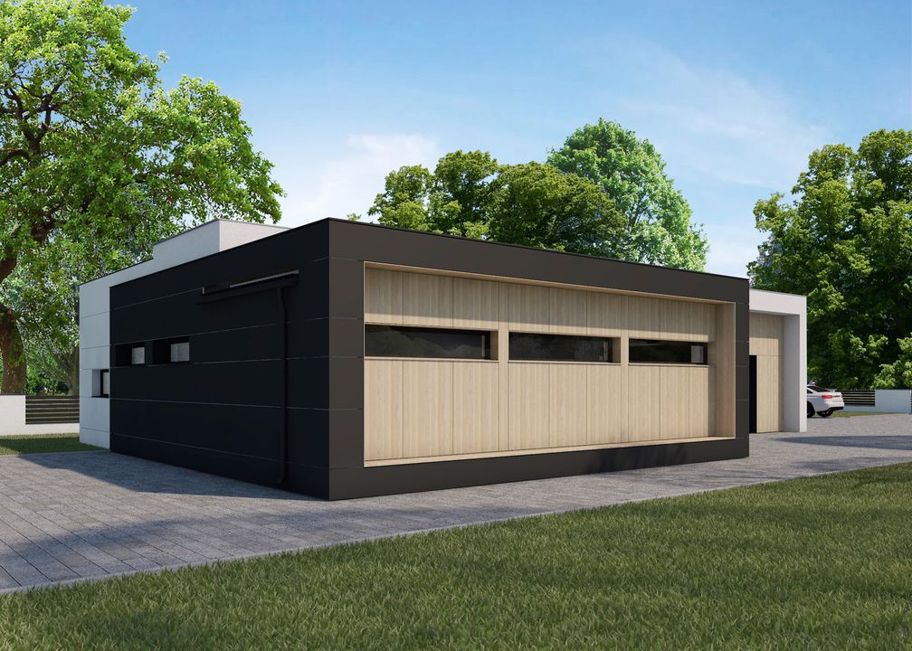 Graficzne opracowanie rzutów poglądowych widocznych na karcie projektu zostało wykonane przez Extradom.pl. Prezentowane przez Extradom.pl wizualizacje wykonane zostały przez autora projektu i należy poczytywać je jedynie za przykład i propozycję wykończenia, wizję architektoniczną autora projektu. Ostateczne wykończenie budynku może nastąpić na wiele sposobów. Szczegółowe rozwiązania zastosowane w oferowanej dokumentacji - w tym również ilość, lokalizacje i wygląd okien, drzwi, kominów - mogą w niewielkim stopniu różnić się od prezentowanej wizualizacji budynku.