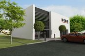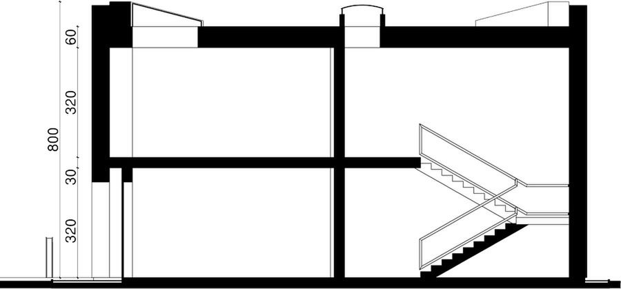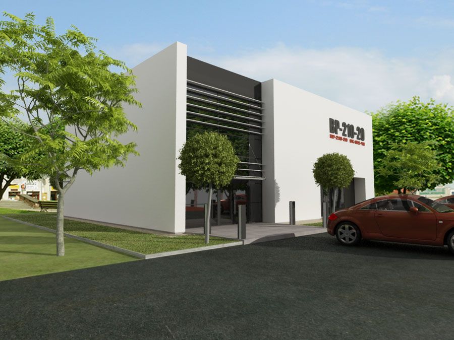 Ściany zewnętrzne: ściany w systemie pustaka ceramicznego 18-20 cm, docieplone styropianem 15 cm Fundamenty: betonowe Ściany wewnętrzne: w konstrukcji szkieletowej Strop: monolityczny, żelbetowy Elewacje: pokryte tynkiem strukturalnym Pokrycie dachu: membrana EPDM