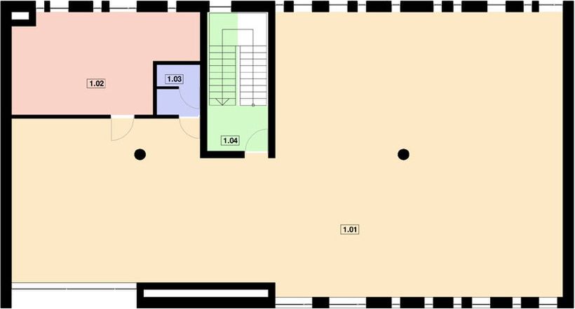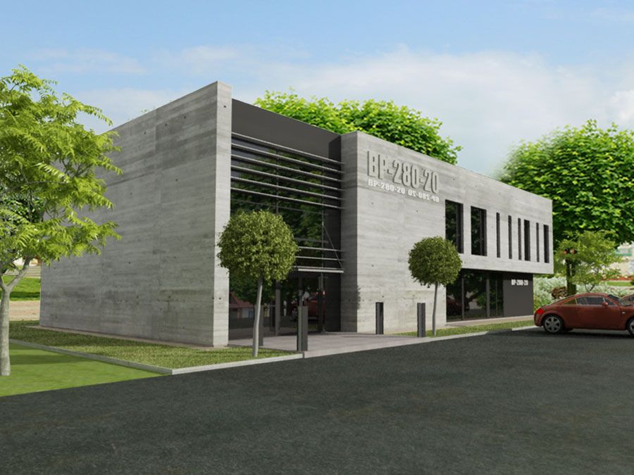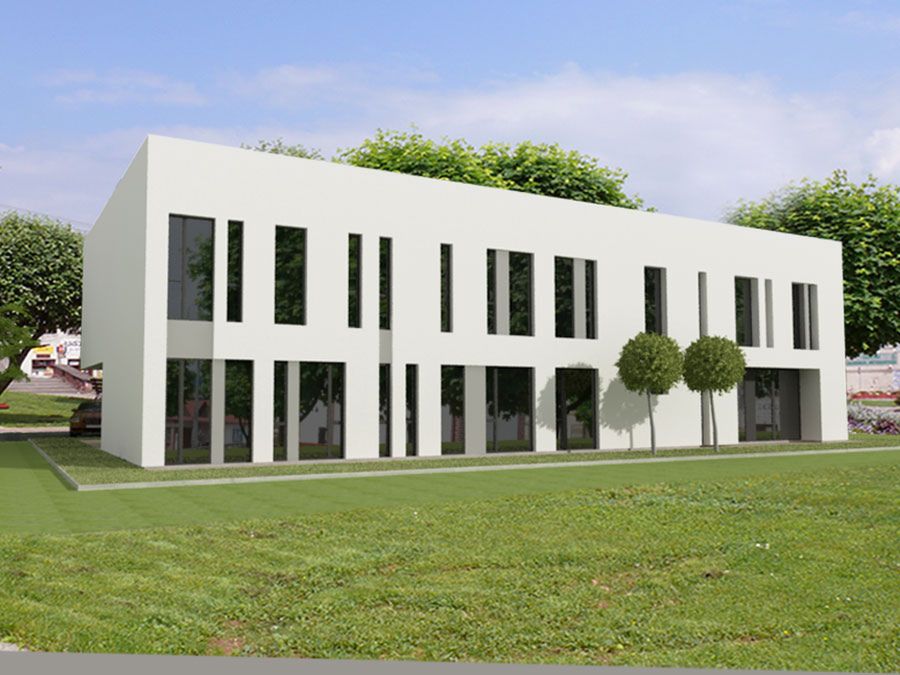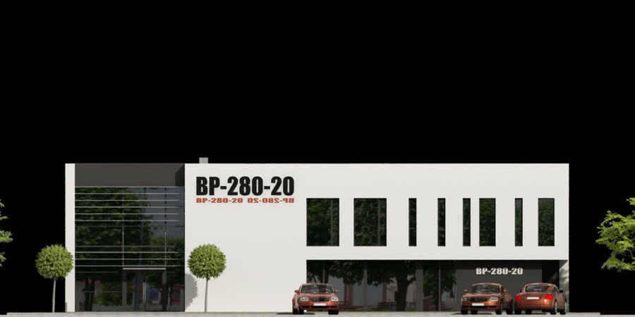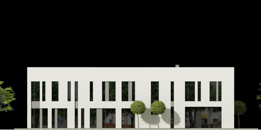 Ściany zewnętrzne: ściany w systemie pustaka ceramicznego 18-20 cm, docieplone styropianem 15 cm Fundamenty: betonowe Ściany wewnętrzne: w konstrukcji szkieletowej Strop: monolityczny, żelbetowy Elewacje: pokryte tynkiem strukturalnym Pokrycie dachu: membrana EPDM