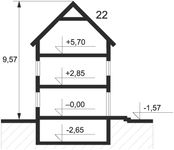 Ściany: 3-warstwowe - pustak ceramiczny + styropian. Stropy: żelbetowe, wylewane. Dach: dachówka, kąt nachylenia 22°. Ogrzewanie: gazowe, olejowe.