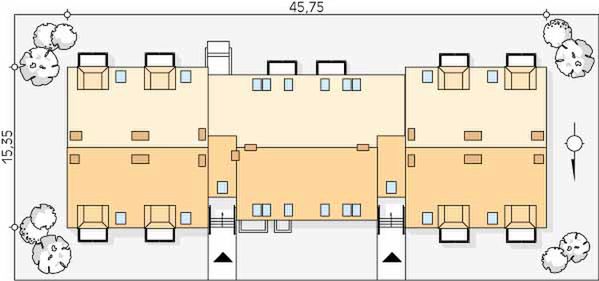 Graficzne opracowanie rzutów poglądowych widocznych na karcie projektu zostało wykonane przez Extradom.pl. Prezentowane przez Extradom.pl wizualizacje wykonane zostały przez autora projektu i należy poczytywać je jedynie za przykład i propozycję wykończenia, wizję architektoniczną autora projektu. Ostateczne wykończenie budynku może nastąpić na wiele sposobów. Szczegółowe rozwiązania zastosowane w oferowanej dokumentacji - w tym również ilość, lokalizacje i wygląd okien, drzwi, kominów - mogą w niewielkim stopniu różnić się od prezentowanej wizualizacji budynku.