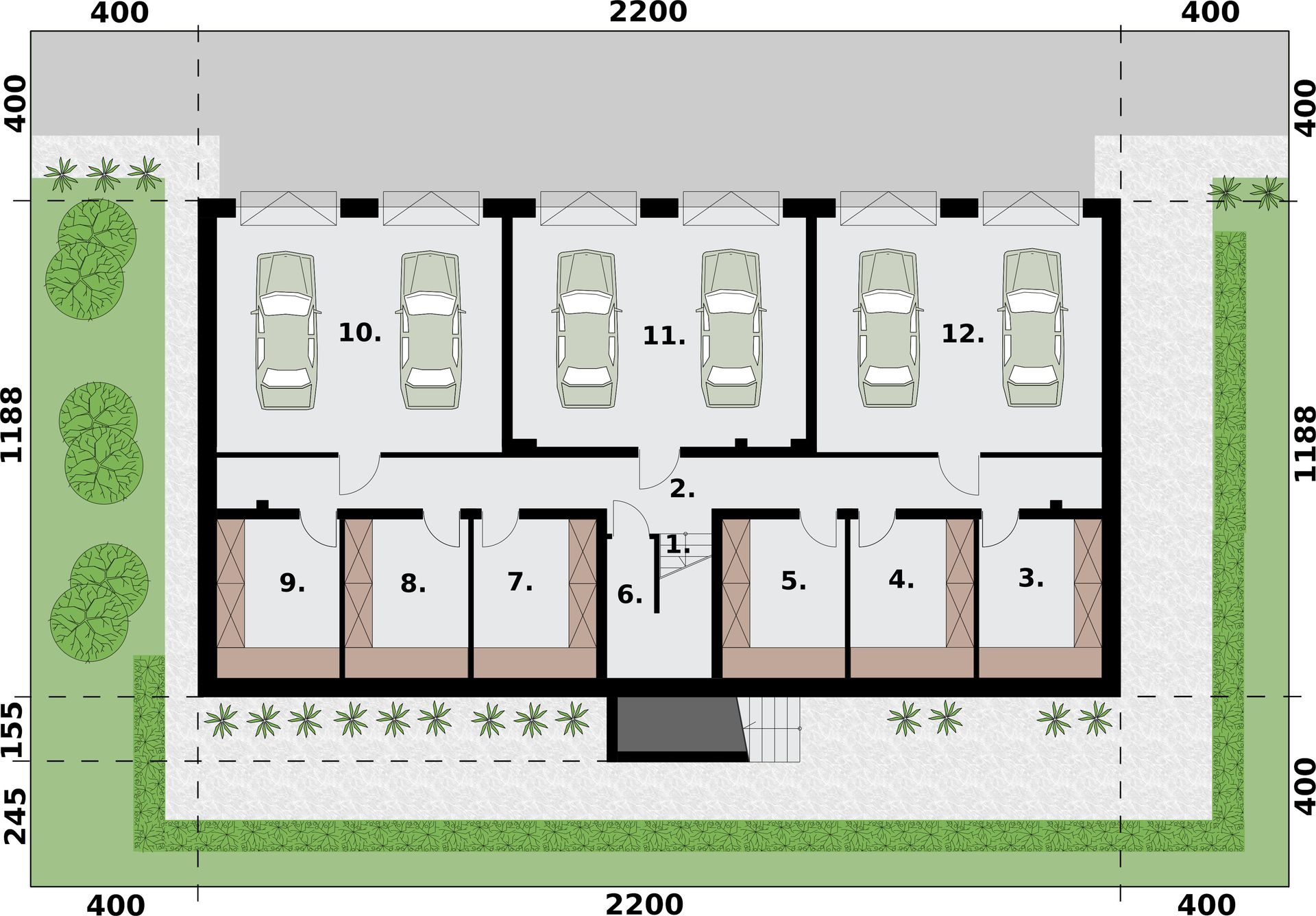 :Główne rozwiązania konstrukcyjno - materiałowe: Projektowany budynek zaprojektowano w technologii murowanej. Główną konstrukcję nośną stanowić będą: ławy, stopy, słupy żelbetowe, ściany nośne w układzie mieszanym z pustaków ceramicznych spięte wieńcami, stropy i stropodach pełny na bazie stropu żelbetowego monolitycznego jednokierunkowo i krzyżowo zbrojonego.