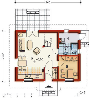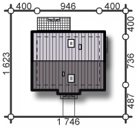 Graficzne opracowanie rzutów poglądowych widocznych na karcie projektu zostało wykonane przez Extradom.pl. Prezentowane przez Extradom.pl wizualizacje wykonane zostały przez autora projektu i należy poczytywać je jedynie za przykład i propozycję wykończenia, wizję architektoniczną autora projektu. Ostateczne wykończenie budynku może nastąpić na wiele sposobów. Szczegółowe rozwiązania zastosowane w oferowanej dokumentacji - w tym również ilość, lokalizacje i wygląd okien, drzwi, kominów - mogą w niewielkim stopniu różnić się od prezentowanej wizualizacji budynku.