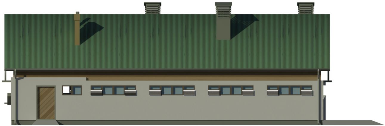 Ściany zewnętrzne: Konstrukcja tradycyjna, murowane ściany warstwowe z 2 rzędami słupów. Wariantowe rozwiązanie ścian, słupów i podciągów.. Strop: żelbetowy. Dach: dwuspadowy o nachyleniu 37 stopni. Poziom kalenicy: 6,78 od terenu. Dodatkowe informacje: Hala dwurzędowa mieści 3 kojce porodowe, 3 indywidualne dla loch, 1 kojec zbiorowy dla 3 loszek, 4 kojce zbiorowe dla 60 warchlaków i tuczników. Obsada 11,45 DJP