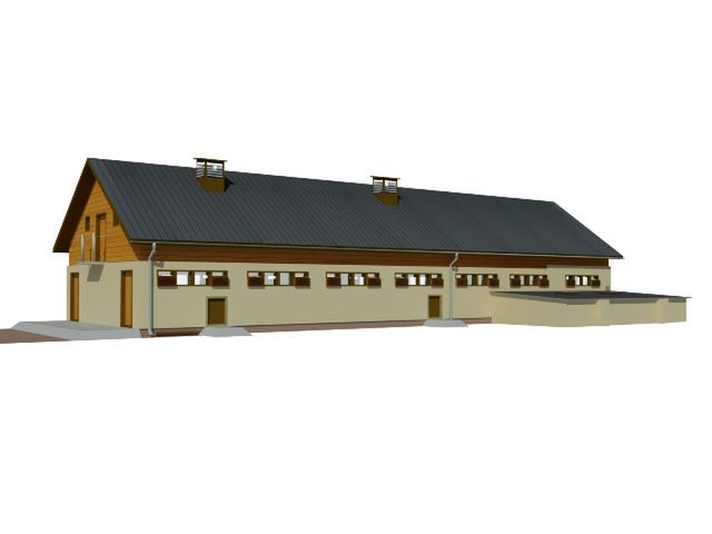 Ściany zewnętrzne: Konstrukcja tradycyjna, murowane ściany warstwowe z 2 rzędami słupów. Moduł podłużny 3,60 m i 4,50 m, rozstaw osiowy poprzeczny 3 x 2,70 m. Wariantowe rozwiązanie materiałowe ścian, słupów i podciągów. Dach: dwuspadowy o kącie nachylenia 37 stopni. Poziom kalenicy: 7,1 od terenu. Dodatkowe informacje: Hala dwurzędowa mieści 5 kojców porodowych, 3 kojce indywidualne, 1 zbiorowy dla 4 loch, 2 kojce dla 6 loszek i 8 kojców zbiorowych dla 88 warchlaków i tuczników. Obsada 18,00 DJP