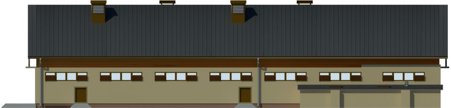 Graficzne opracowanie rzutów poglądowych widocznych na karcie projektu zostało wykonane przez Extradom.pl. Prezentowane przez Extradom.pl wizualizacje wykonane zostały przez autora projektu i należy poczytywać je jedynie za przykład i propozycję wykończenia, wizję architektoniczną autora projektu. Ostateczne wykończenie budynku może nastąpić na wiele sposobów. Szczegółowe rozwiązania zastosowane w oferowanej dokumentacji - w tym również ilość, lokalizacje i wygląd okien, drzwi, kominów - mogą w niewielkim stopniu różnić się od prezentowanej wizualizacji budynku.