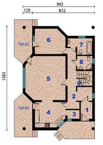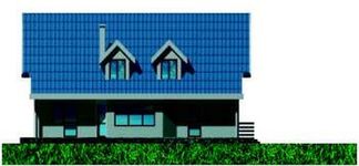 Graficzne opracowanie rzutów poglądowych widocznych na karcie projektu zostało wykonane przez Extradom.pl. Prezentowane przez Extradom.pl wizualizacje wykonane zostały przez autora projektu i należy poczytywać je jedynie za przykład i propozycję wykończenia, wizję architektoniczną autora projektu. Ostateczne wykończenie budynku może nastąpić na wiele sposobów. Szczegółowe rozwiązania zastosowane w oferowanej dokumentacji - w tym również ilość, lokalizacje i wygląd okien, drzwi, kominów - mogą w niewielkim stopniu różnić się od prezentowanej wizualizacji budynku.