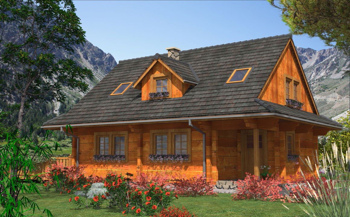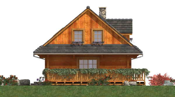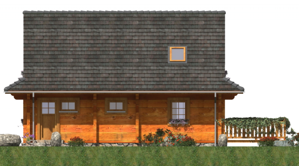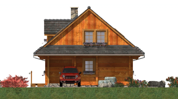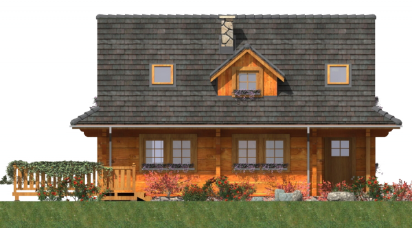 Fundamenty: żelbetowe, wylewane. Ściany zewnętrzne: z bali drewnianych gr. 16 plus ocieplenie 12 cm. Projekt dopuszcza ściany grubości 12, 20, 24, 30 cm ocieplone od wewnątrz wełną mineralną oraz gr. 62 cm bez ocieplenia. Schody: drewniane. Strop: belkowy, drewniany, otwarty. Dach: dwuspadowy. Pokrycie dachu: dachówka betonowa. Nachylenie dachu: 40°. Sposób ogrzewania: Piec dwufunkcyjny na gaz ziemny lub płynny. Istnieje możliwość zastosowania pieca na paliwo stałe. Takie rozwiązanie inwestor może zastosować dokonując zmiany na etapie adaptacji lub w trakcie użytkowania budynku.