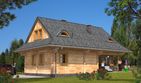 Fundamenty: żelbetowe, wylewane. Ściany zewnętrzne: z bali drewnianych gr. 16 plus ocieplenie 12 cm. Projekt dopuszcza ściany grubości 12, 20, 24, 30 cm ocieplone od wewnątrz wełną mineralną oraz gr. 62 cm bez ocieplenia. Schody: drewniane. Strop: belkowy, drewniany, otwarty. Dach: dwuspadowy. Pokrycie dachu: gont bitumiczny. Nachylenie dachu: 40°. Sposób ogrzewania: piec dwufunkcyjny na gaz ziemny lub płynny.