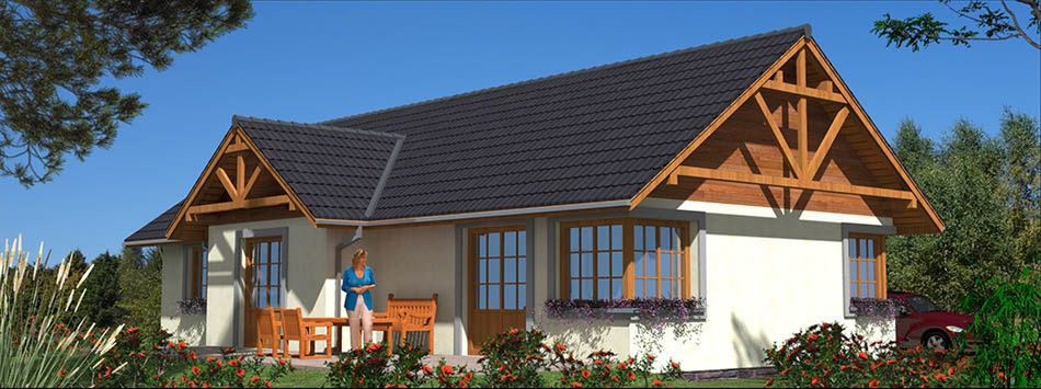 Fundamenty: żelbetowe, wylewane lub z bloczków betonowych. Ściany zewnętrzne: jednowarstwowe beton komórkowy lub pustaki ceramiczne Strop: żelbetowy, prefabrykowany. Pokrycie dachu: dachówka betonowa. Nachylenie dachu: 35°. Sposób ogrzewania: piec dwufunkcyjny na gaz ziemny lub płynny. Alternatywnie piec na paliwo stałe.