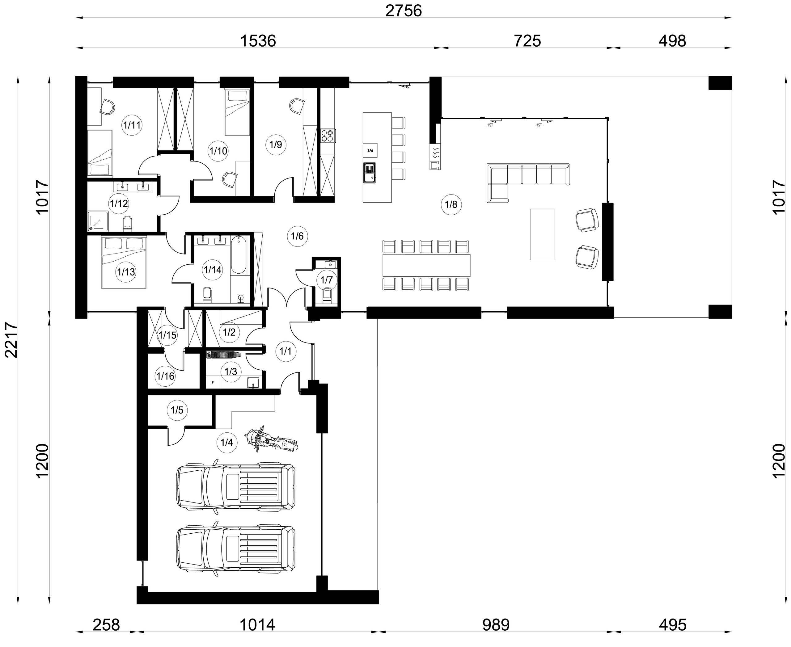 Graficzne opracowanie rzutów poglądowych widocznych na karcie projektu zostało wykonane przez Extradom.pl. Prezentowane przez Extradom.pl wizualizacje wykonane zostały przez autora projektu i należy poczytywać je jedynie za przykład i propozycję wykończenia, wizję architektoniczną autora projektu. Ostateczne wykończenie budynku może nastąpić na wiele sposobów. Szczegółowe rozwiązania zastosowane w oferowanej dokumentacji - w tym również ilość, lokalizacje i wygląd okien, drzwi, kominów - mogą w niewielkim stopniu różnić się od prezentowanej wizualizacji budynku.