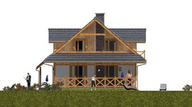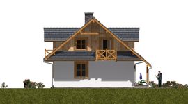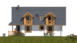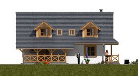 Graficzne opracowanie rzutów poglądowych widocznych na karcie projektu zostało wykonane przez Extradom.pl. Prezentowane przez Extradom.pl wizualizacje wykonane zostały przez autora projektu i należy poczytywać je jedynie za przykład i propozycję wykończenia, wizję architektoniczną autora projektu. Ostateczne wykończenie budynku może nastąpić na wiele sposobów. Szczegółowe rozwiązania zastosowane w oferowanej dokumentacji - w tym również ilość, lokalizacje i wygląd okien, drzwi, kominów - mogą w niewielkim stopniu różnić się od prezentowanej wizualizacji budynku.