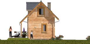 Graficzne opracowanie rzutów poglądowych widocznych na karcie projektu zostało wykonane przez Extradom.pl. Prezentowane przez Extradom.pl wizualizacje wykonane zostały przez autora projektu i należy poczytywać je jedynie za przykład i propozycję wykończenia, wizję architektoniczną autora projektu. Ostateczne wykończenie budynku może nastąpić na wiele sposobów. Szczegółowe rozwiązania zastosowane w oferowanej dokumentacji - w tym również ilość, lokalizacje i wygląd okien, drzwi, kominów - mogą w niewielkim stopniu różnić się od prezentowanej wizualizacji budynku.