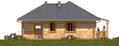 Graficzne opracowanie rzutów poglądowych widocznych na karcie projektu zostało wykonane przez Extradom.pl. Prezentowane przez Extradom.pl wizualizacje wykonane zostały przez autora projektu i należy poczytywać je jedynie za przykład i propozycję wykończenia, wizję architektoniczną autora projektu. Ostateczne wykończenie budynku może nastąpić na wiele sposobów. Szczegółowe rozwiązania zastosowane w oferowanej dokumentacji - w tym również ilość, lokalizacje i wygląd okien, drzwi, kominów - mogą w niewielkim stopniu różnić się od prezentowanej wizualizacji budynku.