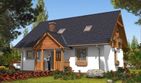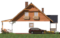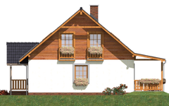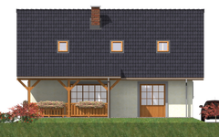Graficzne opracowanie rzutów poglądowych widocznych na karcie projektu zostało wykonane przez Extradom.pl. Prezentowane przez Extradom.pl wizualizacje wykonane zostały przez autora projektu i należy poczytywać je jedynie za przykład i propozycję wykończenia, wizję architektoniczną autora projektu. Ostateczne wykończenie budynku może nastąpić na wiele sposobów. Szczegółowe rozwiązania zastosowane w oferowanej dokumentacji - w tym również ilość, lokalizacje i wygląd okien, drzwi, kominów - mogą w niewielkim stopniu różnić się od prezentowanej wizualizacji budynku.