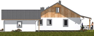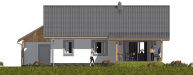 Graficzne opracowanie rzutów poglądowych widocznych na karcie projektu zostało wykonane przez Extradom.pl. Prezentowane przez Extradom.pl wizualizacje wykonane zostały przez autora projektu i należy poczytywać je jedynie za przykład i propozycję wykończenia, wizję architektoniczną autora projektu. Ostateczne wykończenie budynku może nastąpić na wiele sposobów. Szczegółowe rozwiązania zastosowane w oferowanej dokumentacji - w tym również ilość, lokalizacje i wygląd okien, drzwi, kominów - mogą w niewielkim stopniu różnić się od prezentowanej wizualizacji budynku.