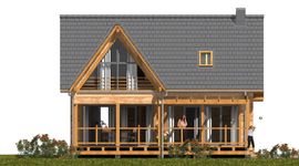 Fundamenty: żelbetowe, wylewane. Ściany zewnętrzne: z bali drewnianych gr. 16 plus ocieplenie 12 cm. Projekt dopuszcza ściany grubości 12, 20, 24, 30 cm ocieplone od wewnątrz wełną mineralną oraz gr. 62 cm bez ocieplenia. Schody: drewniane. Strop: belkowy, drewniany, otwarty. Dach: dwuspadowy. Pokrycie dachu: dachówka cementowa. Nachylenie dachu: 45°. Sposób ogrzewania: piec dwufunkcyjny na gaz ziemny lub płynny. Istnieje możliwość zastosowania pieca na paliwo stałe. Takie rozwiązanie inwestor może zastosować dokonując zmiany na etapie adaptacji lub w trakcie użytkowania budynku.
