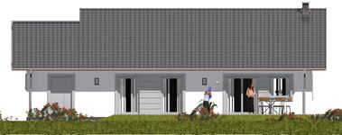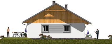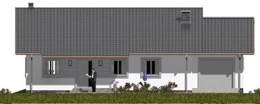 Graficzne opracowanie rzutów poglądowych widocznych na karcie projektu zostało wykonane przez Extradom.pl. Prezentowane przez Extradom.pl wizualizacje wykonane zostały przez autora projektu i należy poczytywać je jedynie za przykład i propozycję wykończenia, wizję architektoniczną autora projektu. Ostateczne wykończenie budynku może nastąpić na wiele sposobów. Szczegółowe rozwiązania zastosowane w oferowanej dokumentacji - w tym również ilość, lokalizacje i wygląd okien, drzwi, kominów - mogą w niewielkim stopniu różnić się od prezentowanej wizualizacji budynku.
