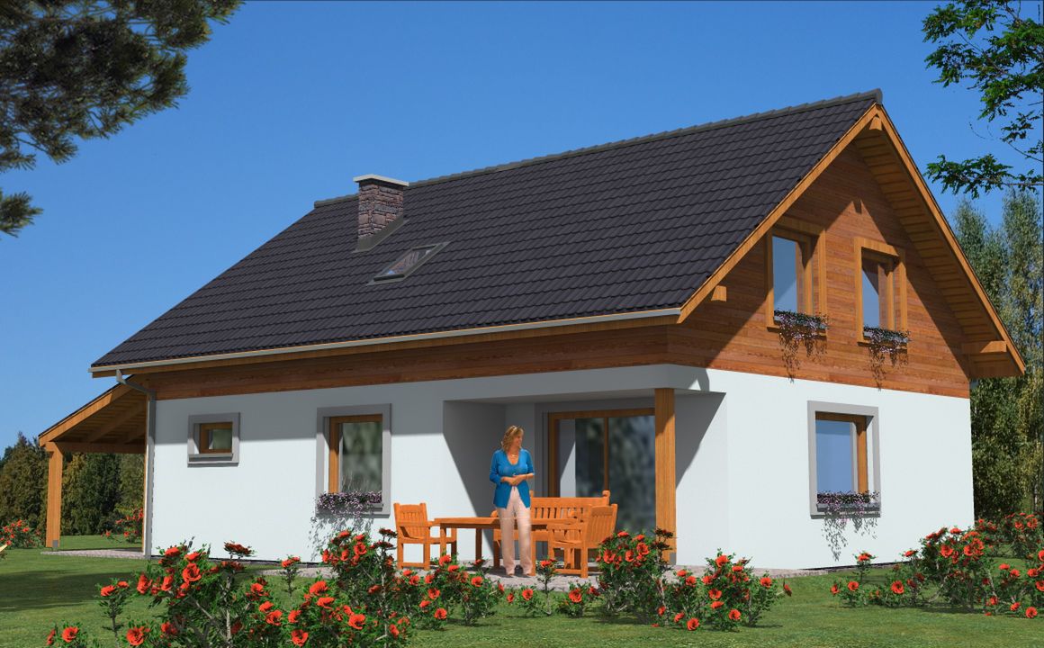 Fundamenty: żelbetowe, wylewane. Ściany zewnętrzne: szkieletowe, ocieplone wełną mineralną. Strop: belkowy, drewniany,zamknięty. Pokrycie dachu: dachówka ceramiczna. Nachylenie dachu: 35°. Sposób ogrzewania: piec dwufunkcyjny na gaz ziemny lub płynny. Istnieje możliwość zastosowania pieca na paliwo stałe. Takie rozwiązanie inwestor może zastosować dokonując zmiany na etapie adaptacji lub w trakcie użytkowania budynku.