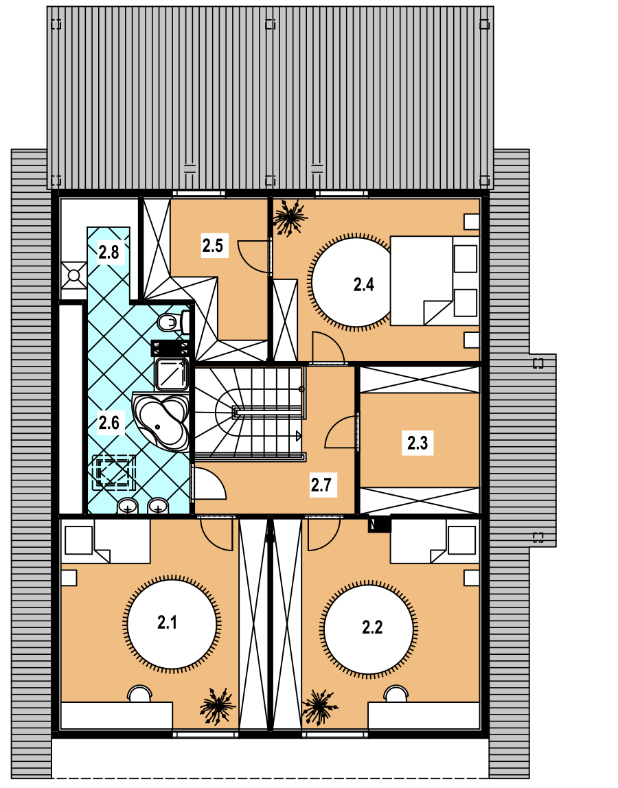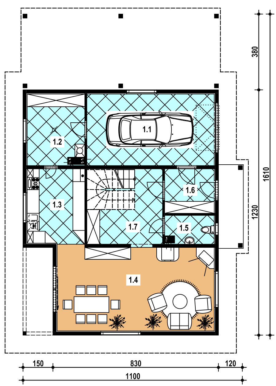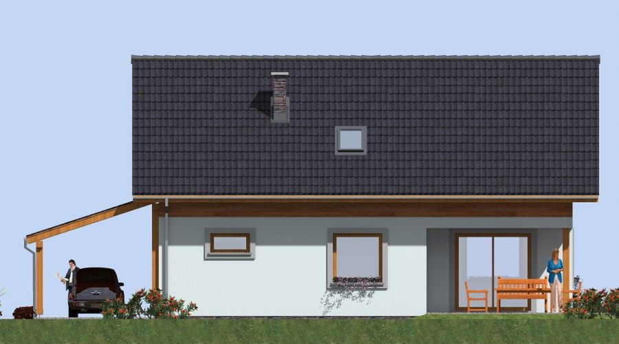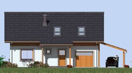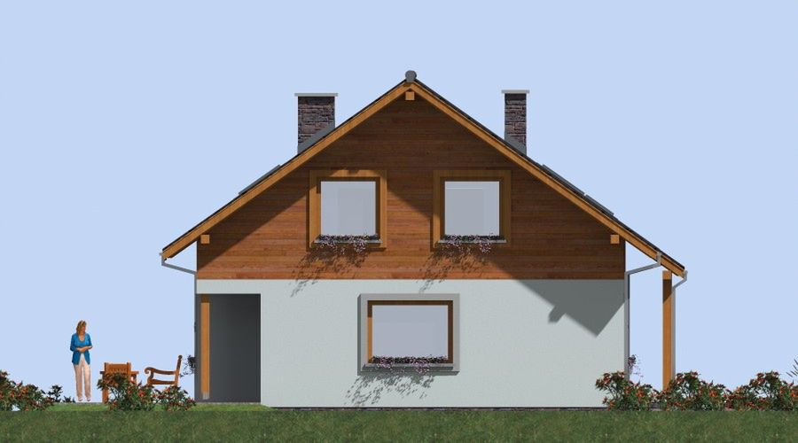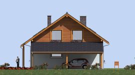 Graficzne opracowanie rzutów poglądowych widocznych na karcie projektu zostało wykonane przez Extradom.pl. Prezentowane przez Extradom.pl wizualizacje wykonane zostały przez autora projektu i należy poczytywać je jedynie za przykład i propozycję wykończenia, wizję architektoniczną autora projektu. Ostateczne wykończenie budynku może nastąpić na wiele sposobów. Szczegółowe rozwiązania zastosowane w oferowanej dokumentacji - w tym również ilość, lokalizacje i wygląd okien, drzwi, kominów - mogą w niewielkim stopniu różnić się od prezentowanej wizualizacji budynku.