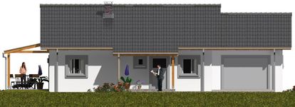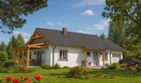Graficzne opracowanie rzutów poglądowych widocznych na karcie projektu zostało wykonane przez Extradom.pl. Prezentowane przez Extradom.pl wizualizacje wykonane zostały przez autora projektu i należy poczytywać je jedynie za przykład i propozycję wykończenia, wizję architektoniczną autora projektu. Ostateczne wykończenie budynku może nastąpić na wiele sposobów. Szczegółowe rozwiązania zastosowane w oferowanej dokumentacji - w tym również ilość, lokalizacje i wygląd okien, drzwi, kominów - mogą w niewielkim stopniu różnić się od prezentowanej wizualizacji budynku.