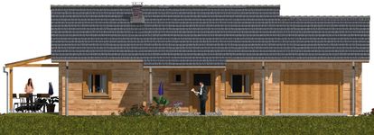 Graficzne opracowanie rzutów poglądowych widocznych na karcie projektu zostało wykonane przez Extradom.pl. Prezentowane przez Extradom.pl wizualizacje wykonane zostały przez autora projektu i należy poczytywać je jedynie za przykład i propozycję wykończenia, wizję architektoniczną autora projektu. Ostateczne wykończenie budynku może nastąpić na wiele sposobów. Szczegółowe rozwiązania zastosowane w oferowanej dokumentacji - w tym również ilość, lokalizacje i wygląd okien, drzwi, kominów - mogą w niewielkim stopniu różnić się od prezentowanej wizualizacji budynku.