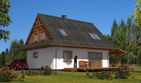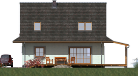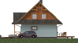 Graficzne opracowanie rzutów poglądowych widocznych na karcie projektu zostało wykonane przez Extradom.pl. Prezentowane przez Extradom.pl wizualizacje wykonane zostały przez autora projektu i należy poczytywać je jedynie za przykład i propozycję wykończenia, wizję architektoniczną autora projektu. Ostateczne wykończenie budynku może nastąpić na wiele sposobów. Szczegółowe rozwiązania zastosowane w oferowanej dokumentacji - w tym również ilość, lokalizacje i wygląd okien, drzwi, kominów - mogą w niewielkim stopniu różnić się od prezentowanej wizualizacji budynku.