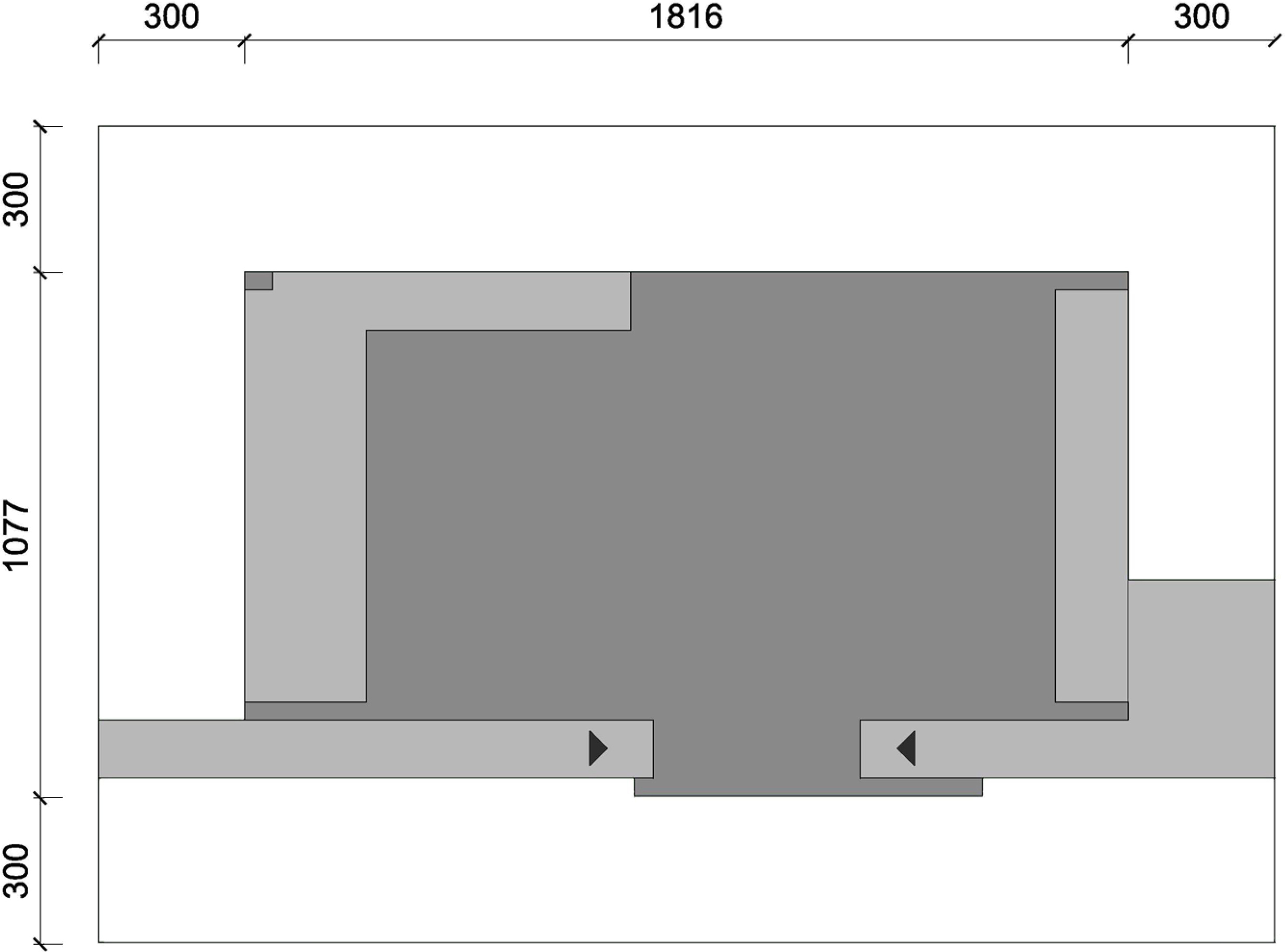 Fundament: ławy fundamentowe. Ściany zewnętrzne: murowane, dwuwarstwowe. Ściany wewnętrzne: murowane. Strop: gęstożebrowy. Dach: kryty blachą płaską.