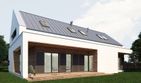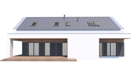 Graficzne opracowanie rzutów poglądowych widocznych na karcie projektu zostało wykonane przez Extradom.pl. Prezentowane przez Extradom.pl wizualizacje wykonane zostały przez autora projektu i należy poczytywać je jedynie za przykład i propozycję wykończenia, wizję architektoniczną autora projektu. Ostateczne wykończenie budynku może nastąpić na wiele sposobów. Szczegółowe rozwiązania zastosowane w oferowanej dokumentacji - w tym również ilość, lokalizacje i wygląd okien, drzwi, kominów - mogą w niewielkim stopniu różnić się od prezentowanej wizualizacji budynku.