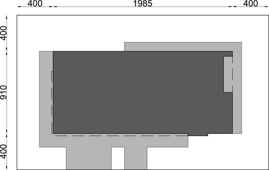 Fundament: ławy fundamentowe. Ściany zewnętrzne: murowane, dwuwarstwowe. Ściany wewnętrzne: murowane. Strop: gęstożebrowy. Dach: blacha płaska.