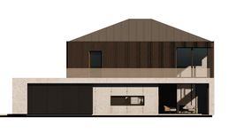 Graficzne opracowanie rzutów poglądowych widocznych na karcie projektu zostało wykonane przez Extradom.pl. Prezentowane przez Extradom.pl wizualizacje wykonane zostały przez autora projektu i należy poczytywać je jedynie za przykład i propozycję wykończenia, wizję architektoniczną autora projektu. Ostateczne wykończenie budynku może nastąpić na wiele sposobów. Szczegółowe rozwiązania zastosowane w oferowanej dokumentacji - w tym również ilość, lokalizacje i wygląd okien, drzwi, kominów - mogą w niewielkim stopniu różnić się od prezentowanej wizualizacji budynku.