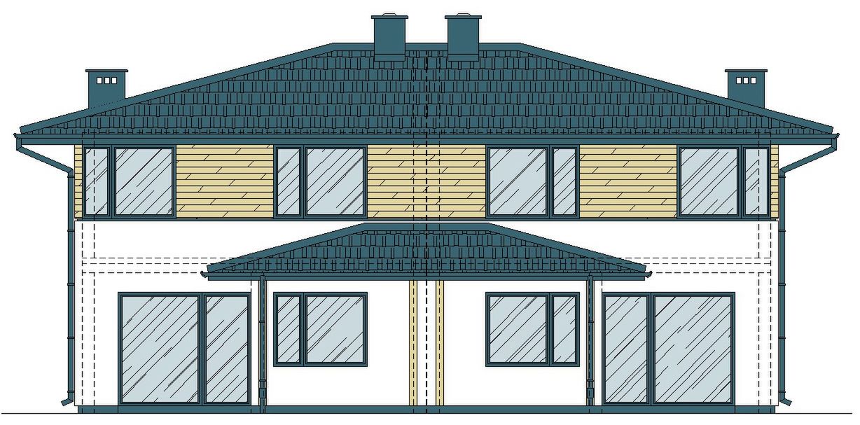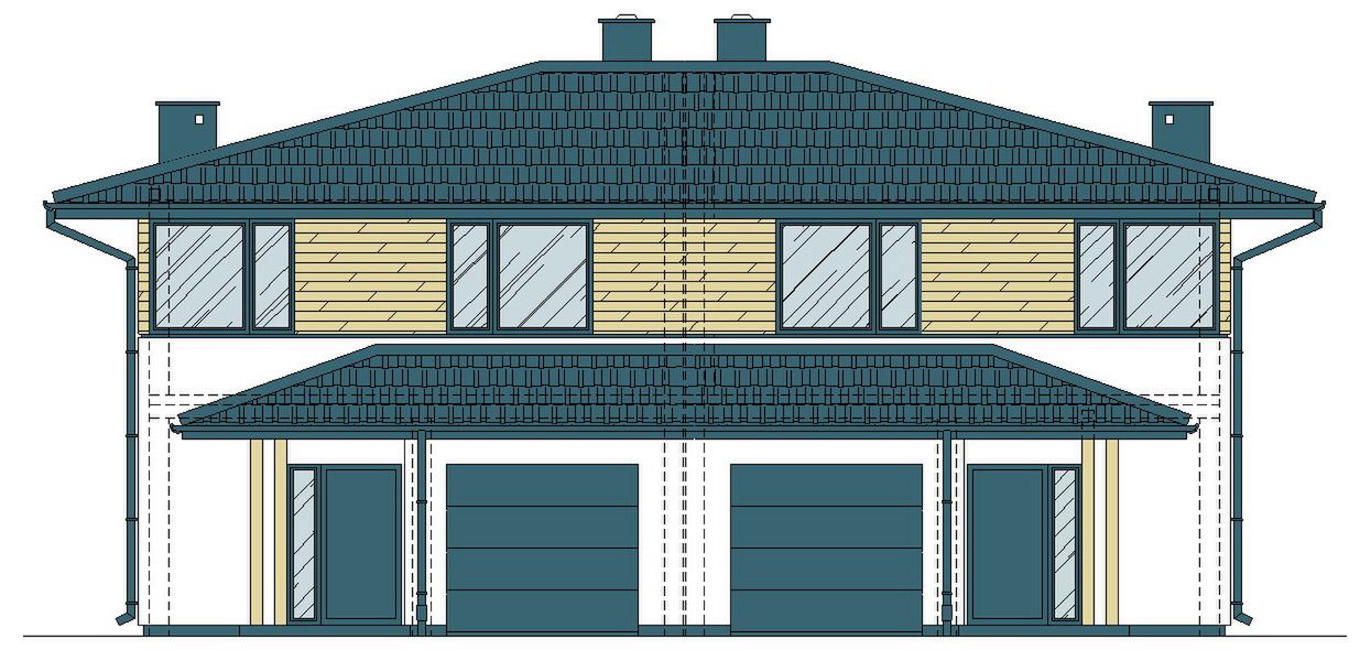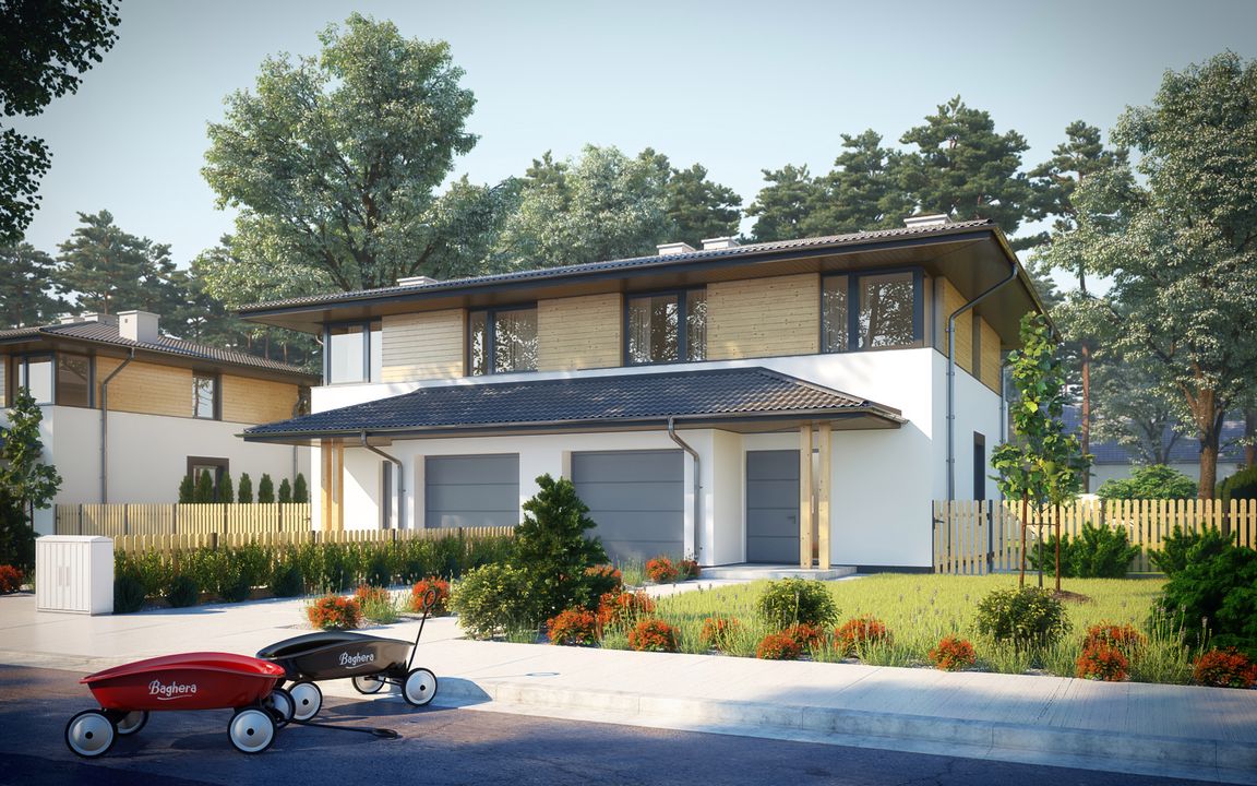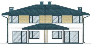 Graficzne opracowanie rzutów poglądowych widocznych na karcie projektu zostało wykonane przez Extradom.pl. Prezentowane przez Extradom.pl wizualizacje wykonane zostały przez autora projektu i należy poczytywać je jedynie za przykład i propozycję wykończenia, wizję architektoniczną autora projektu. Ostateczne wykończenie budynku może nastąpić na wiele sposobów. Szczegółowe rozwiązania zastosowane w oferowanej dokumentacji - w tym również ilość, lokalizacje i wygląd okien, drzwi, kominów - mogą w niewielkim stopniu różnić się od prezentowanej wizualizacji budynku.