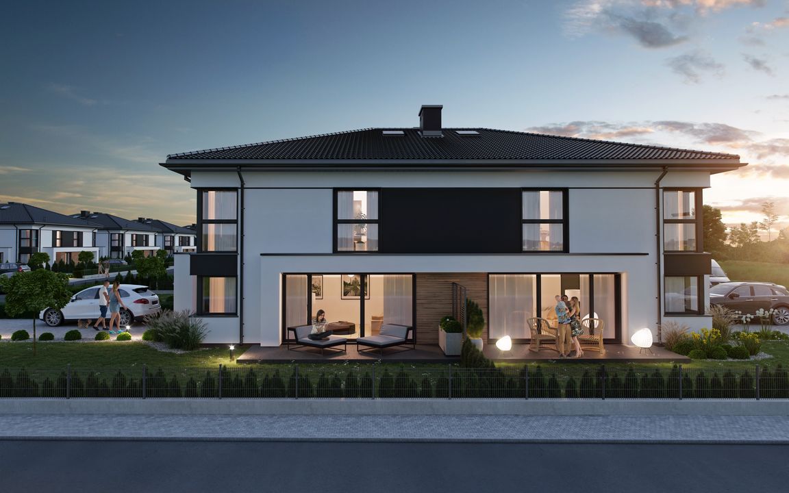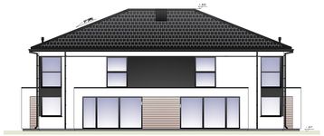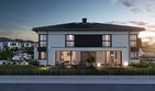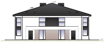 Graficzne opracowanie rzutów poglądowych widocznych na karcie projektu zostało wykonane przez Extradom.pl. Prezentowane przez Extradom.pl wizualizacje wykonane zostały przez autora projektu i należy poczytywać je jedynie za przykład i propozycję wykończenia, wizję architektoniczną autora projektu. Ostateczne wykończenie budynku może nastąpić na wiele sposobów. Szczegółowe rozwiązania zastosowane w oferowanej dokumentacji - w tym również ilość, lokalizacje i wygląd okien, drzwi, kominów - mogą w niewielkim stopniu różnić się od prezentowanej wizualizacji budynku.
