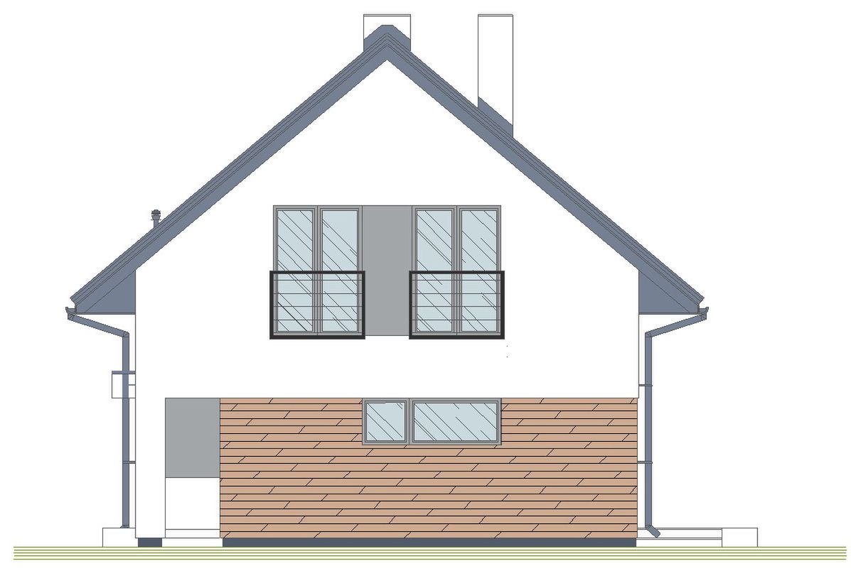 Graficzne opracowanie rzutów poglądowych widocznych na karcie projektu zostało wykonane przez Extradom.pl. Prezentowane przez Extradom.pl wizualizacje wykonane zostały przez autora projektu i należy poczytywać je jedynie za przykład i propozycję wykończenia, wizję architektoniczną autora projektu. Ostateczne wykończenie budynku może nastąpić na wiele sposobów. Szczegółowe rozwiązania zastosowane w oferowanej dokumentacji - w tym również ilość, lokalizacje i wygląd okien, drzwi, kominów - mogą w niewielkim stopniu różnić się od prezentowanej wizualizacji budynku.