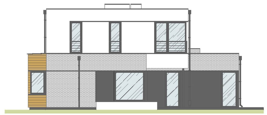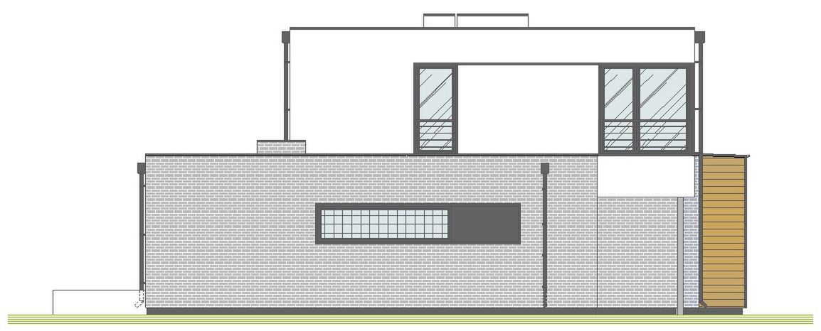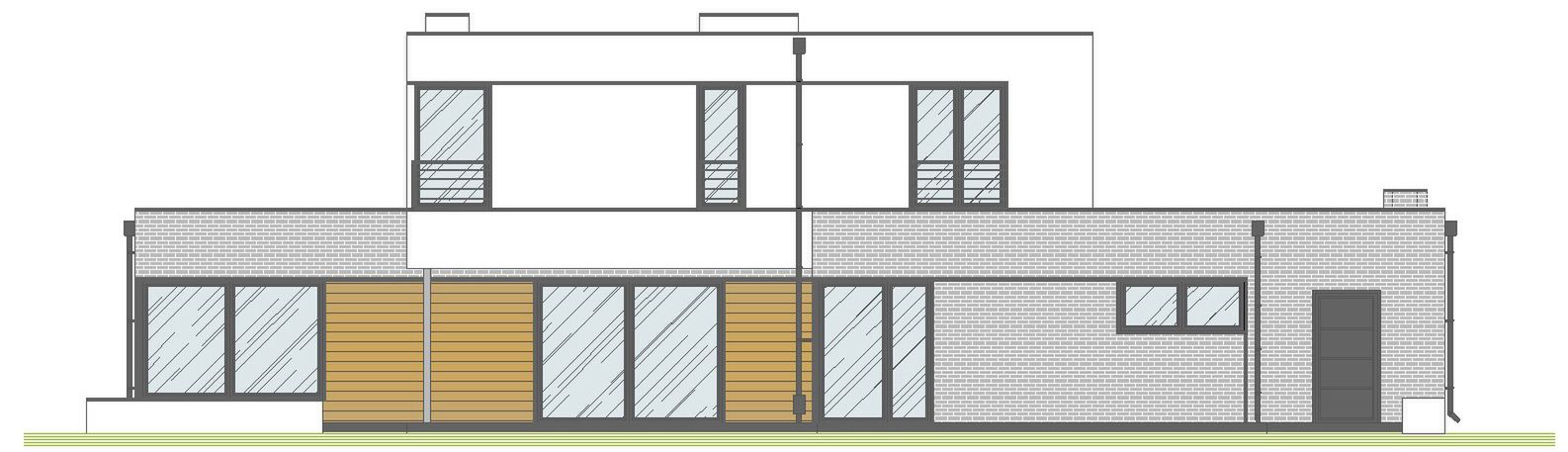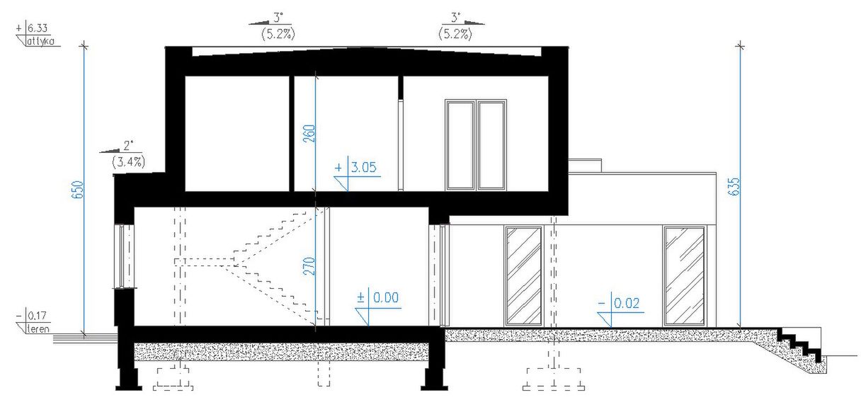 Posadowienie budynku: ława fundamentowa; Ściany zewnętrzne: murowane z bloczków/pustaków gr. 25cm + 15cm styropian/20 cm wełna mineralna; Ściany wewnętrzne: Nośne - murowane z bloczków/pustaków gr. 25cm; ściany działowe – z pustaków gazobetonowych gr. 12cm; Strop nad parterem: płyta żelbetowa gr. 18cm; Konstrukcja dachu: stropodach żebetowy; Pokrycie dachu: stropodach pokryty papą termozgrzewalną, dach nad fragmentem kuchni-pokrycie z blachy arkuszowej łączonej na rąbek stojący; Elewacja: tynk cienkowarstwowy biały, tynk cienkowarstwowy szary/ płytka elewacyjna szara, oblicówka z desek, ramka szerokości 5 cm, stanowiąca obróbkę otworów okiennych i drzwiowych oraz podział Ściany – blacha stalowa;