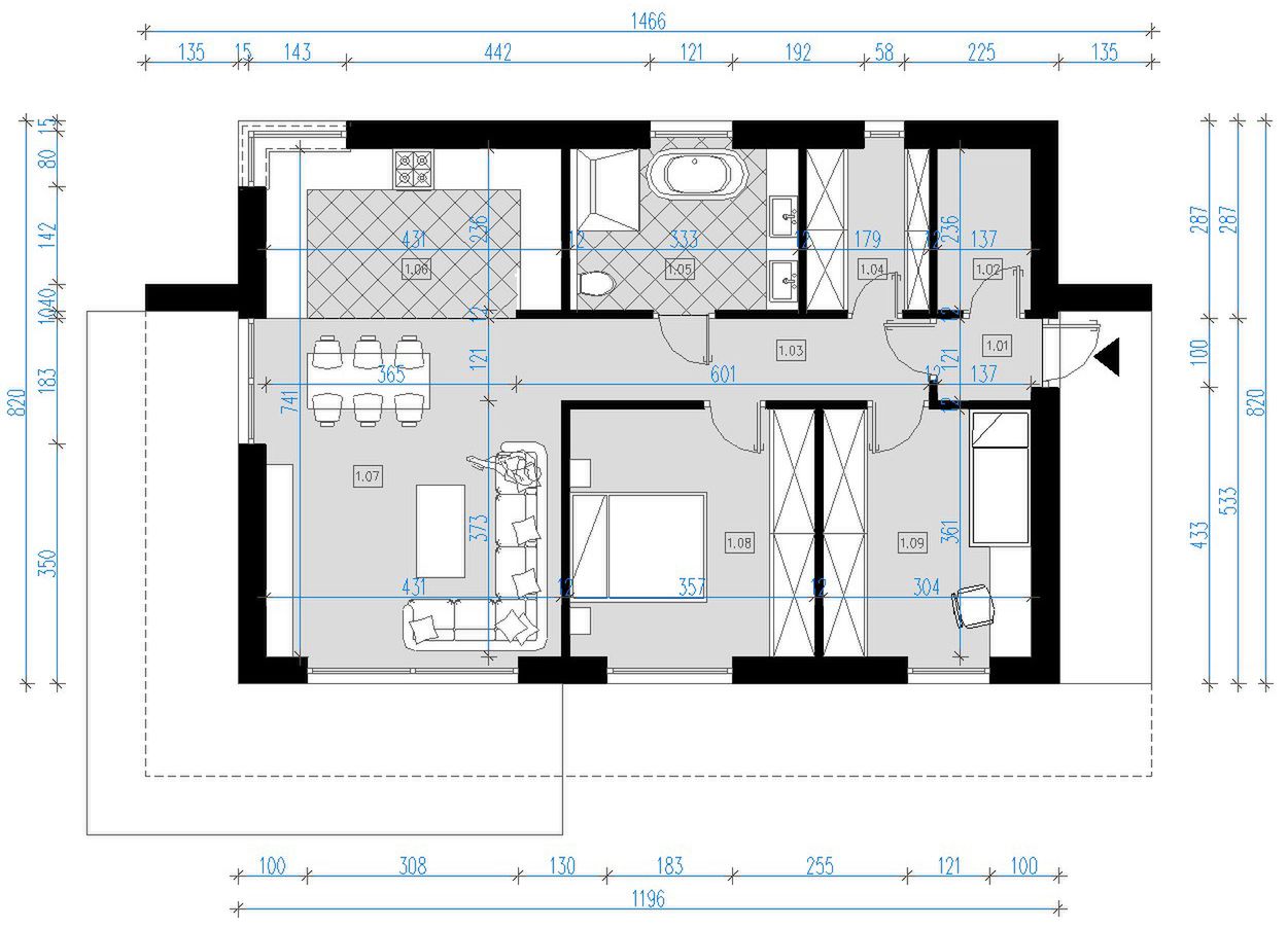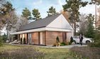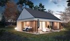 Graficzne opracowanie rzutów poglądowych widocznych na karcie projektu zostało wykonane przez Extradom.pl. Prezentowane przez Extradom.pl wizualizacje wykonane zostały przez autora projektu i należy poczytywać je jedynie za przykład i propozycję wykończenia, wizję architektoniczną autora projektu. Ostateczne wykończenie budynku może nastąpić na wiele sposobów. Szczegółowe rozwiązania zastosowane w oferowanej dokumentacji - w tym również ilość, lokalizacje i wygląd okien, drzwi, kominów - mogą w niewielkim stopniu różnić się od prezentowanej wizualizacji budynku.