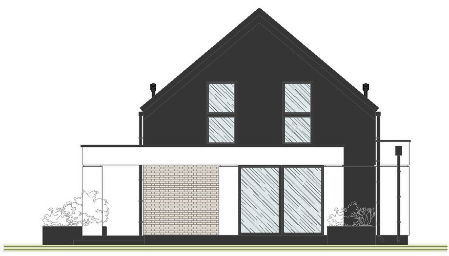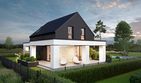 Graficzne opracowanie rzutów poglądowych widocznych na karcie projektu zostało wykonane przez Extradom.pl. Prezentowane przez Extradom.pl wizualizacje wykonane zostały przez autora projektu i należy poczytywać je jedynie za przykład i propozycję wykończenia, wizję architektoniczną autora projektu. Ostateczne wykończenie budynku może nastąpić na wiele sposobów. Szczegółowe rozwiązania zastosowane w oferowanej dokumentacji - w tym również ilość, lokalizacje i wygląd okien, drzwi, kominów - mogą w niewielkim stopniu różnić się od prezentowanej wizualizacji budynku.