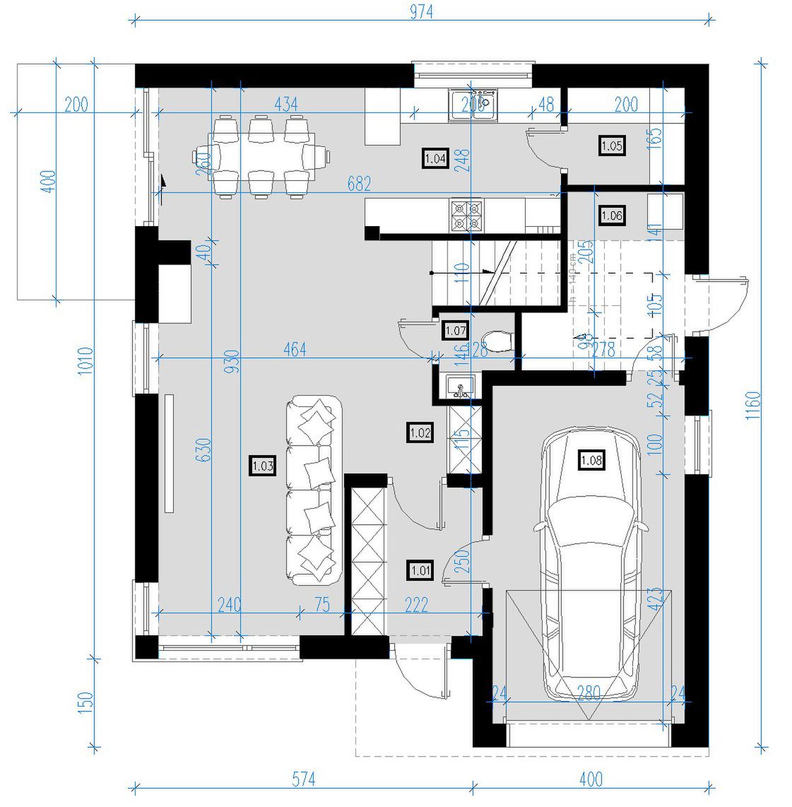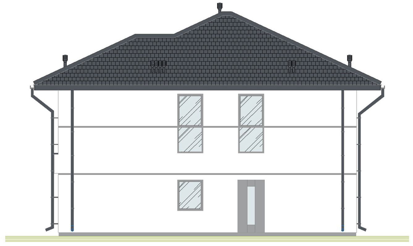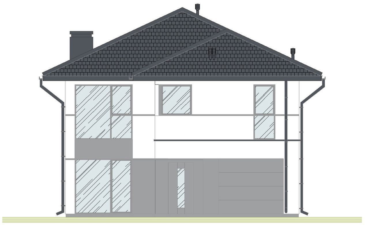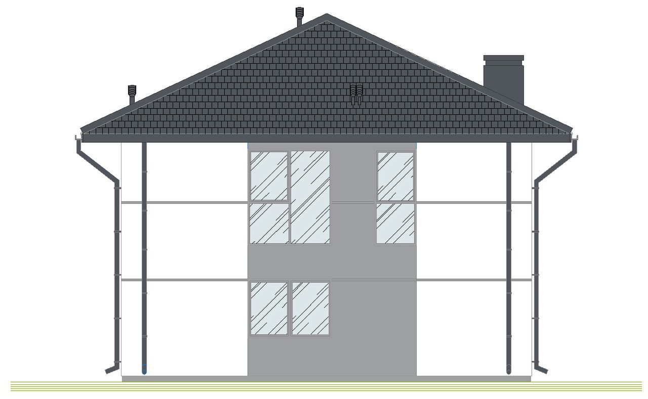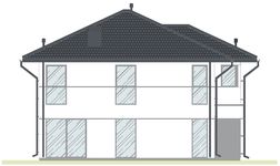 Graficzne opracowanie rzutów poglądowych widocznych na karcie projektu zostało wykonane przez Extradom.pl. Prezentowane przez Extradom.pl wizualizacje wykonane zostały przez autora projektu i należy poczytywać je jedynie za przykład i propozycję wykończenia, wizję architektoniczną autora projektu. Ostateczne wykończenie budynku może nastąpić na wiele sposobów. Szczegółowe rozwiązania zastosowane w oferowanej dokumentacji - w tym również ilość, lokalizacje i wygląd okien, drzwi, kominów - mogą w niewielkim stopniu różnić się od prezentowanej wizualizacji budynku.