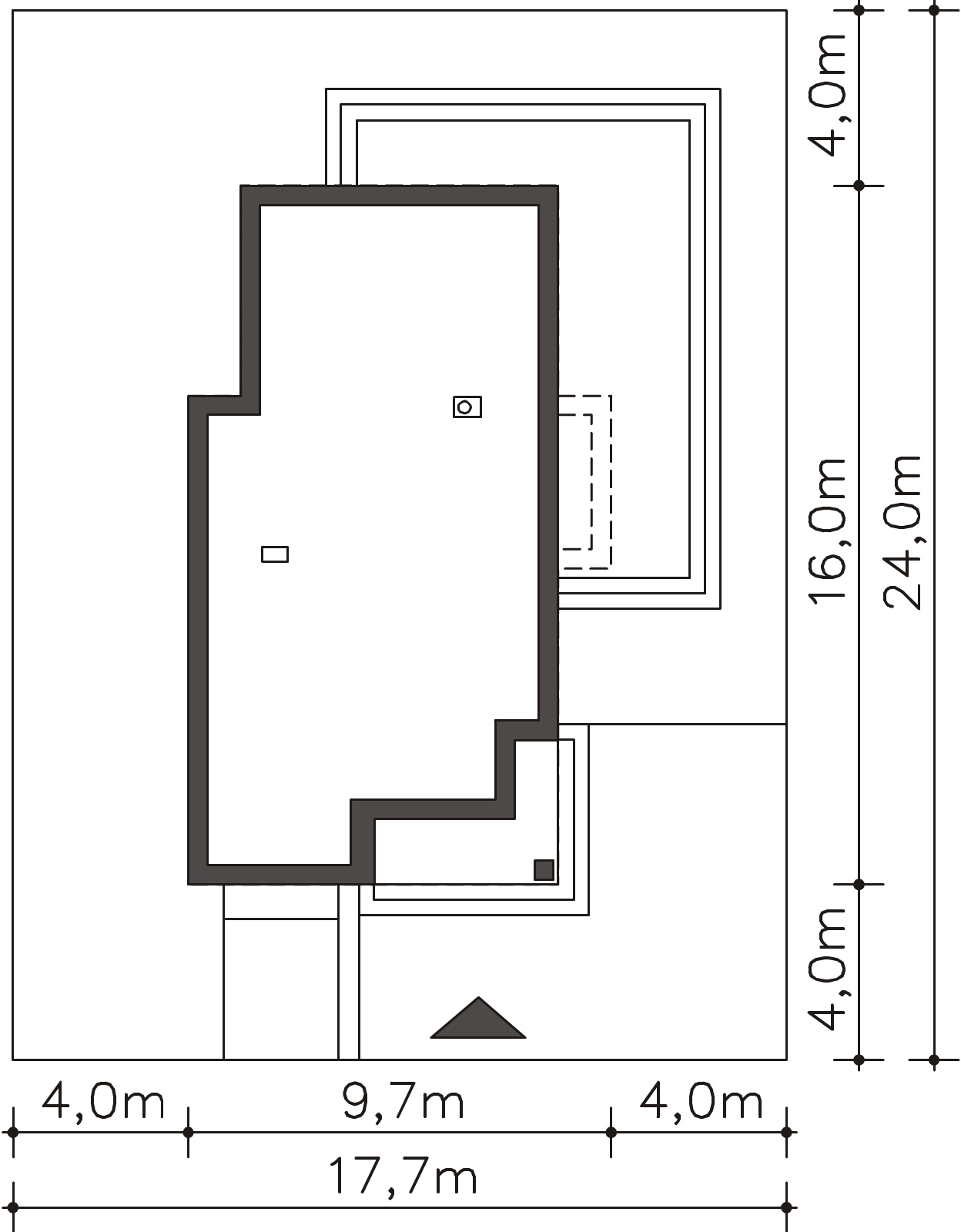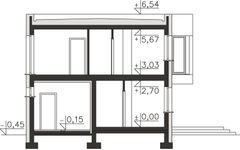 Fundamenty - rozwiązanie o podwyższonej izolacji termicznej. Ściany zewnętrzne - Bloczek silikatowy 24 cm + styropian 20 cm. Strop - gęstożebrowy. Dach - stropodach żelbetowy. Ogrzewanie - c.o. grzejnikowe + c.w.u. - kocioł gazowy. Wentylacja - rekuperacja.