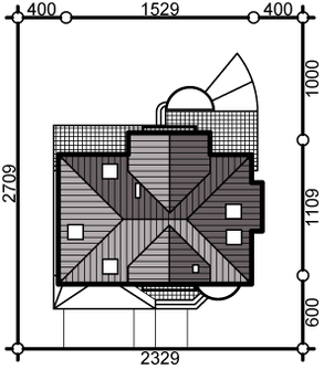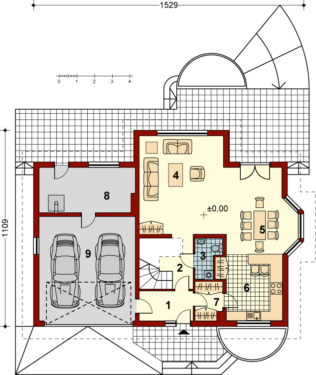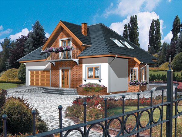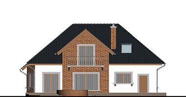 Graficzne opracowanie rzutów poglądowych widocznych na karcie projektu zostało wykonane przez Extradom.pl. Prezentowane przez Extradom.pl wizualizacje wykonane zostały przez autora projektu i należy poczytywać je jedynie za przykład i propozycję wykończenia, wizję architektoniczną autora projektu. Ostateczne wykończenie budynku może nastąpić na wiele sposobów. Szczegółowe rozwiązania zastosowane w oferowanej dokumentacji - w tym również ilość, lokalizacje i wygląd okien, drzwi, kominów - mogą w niewielkim stopniu różnić się od prezentowanej wizualizacji budynku.
