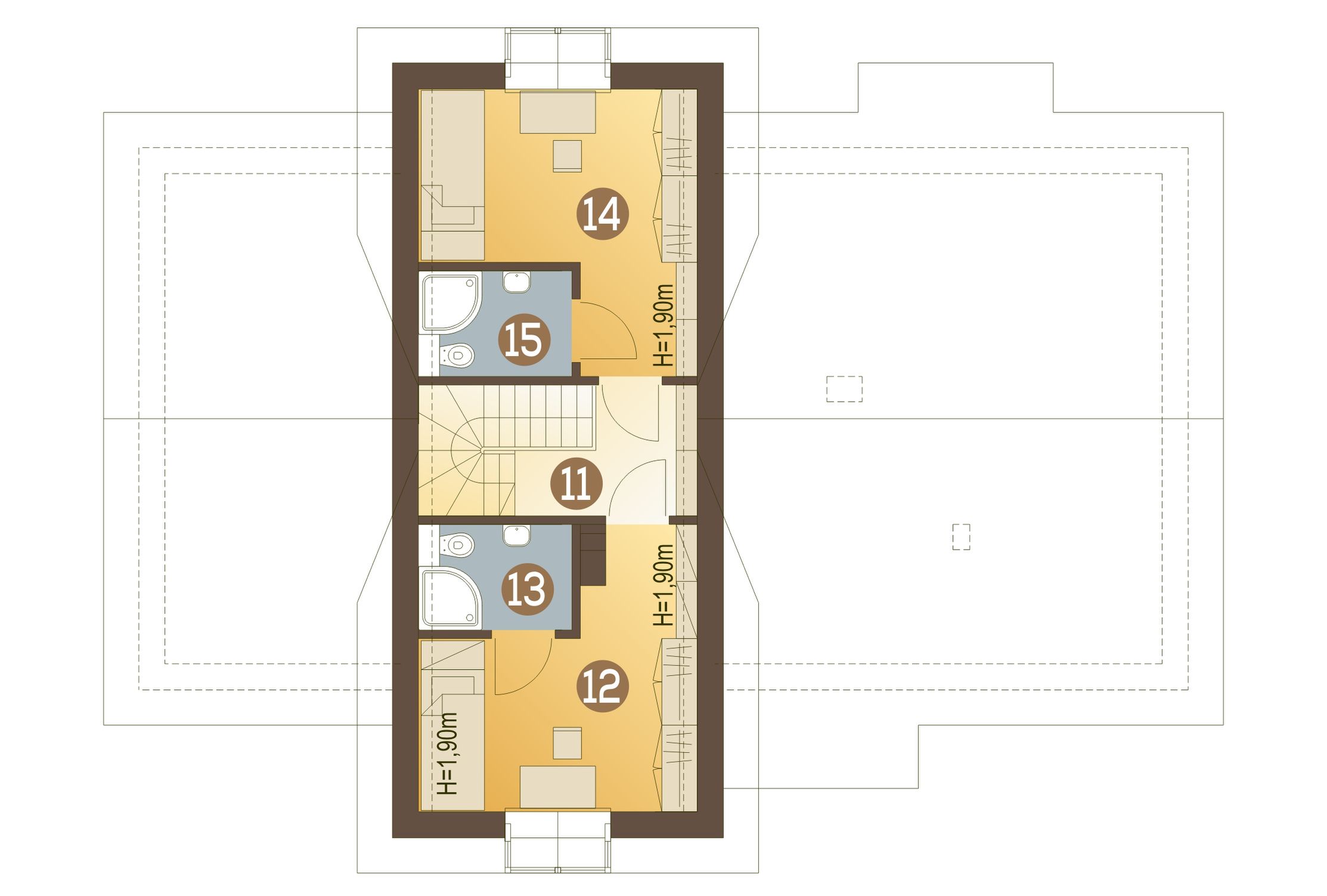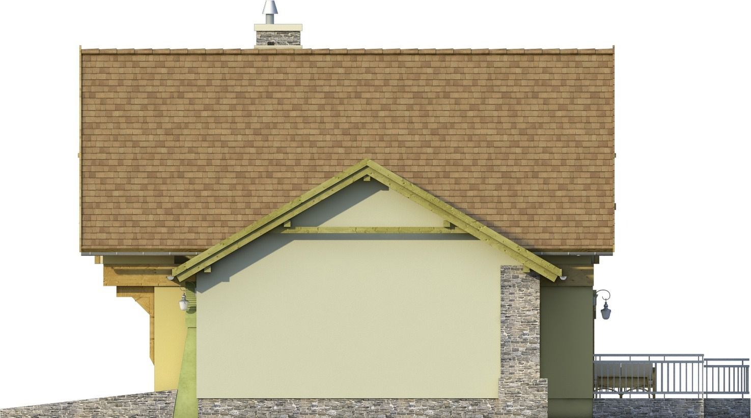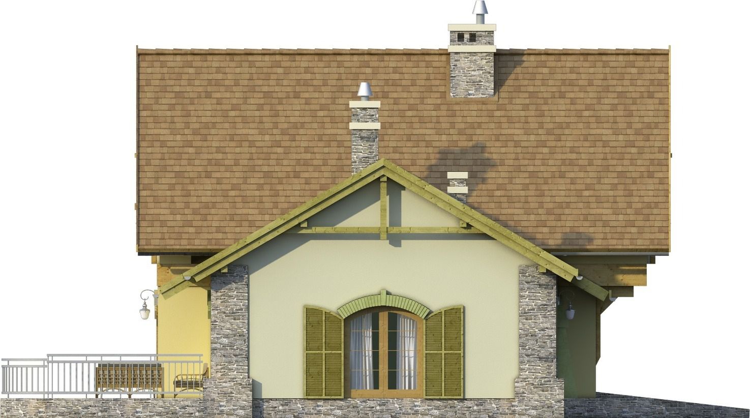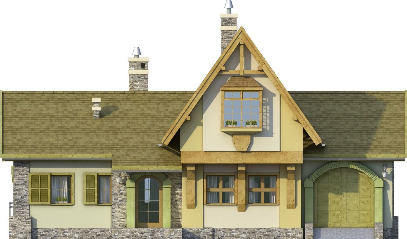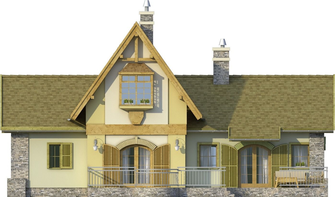 Graficzne opracowanie rzutów poglądowych widocznych na karcie projektu zostało wykonane przez Extradom.pl. Prezentowane przez Extradom.pl wizualizacje wykonane zostały przez autora projektu i należy poczytywać je jedynie za przykład i propozycję wykończenia, wizję architektoniczną autora projektu. Ostateczne wykończenie budynku może nastąpić na wiele sposobów. Szczegółowe rozwiązania zastosowane w oferowanej dokumentacji - w tym również ilość, lokalizacje i wygląd okien, drzwi, kominów - mogą w niewielkim stopniu różnić się od prezentowanej wizualizacji budynku.