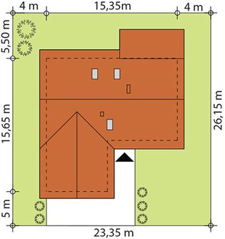 Graficzne opracowanie rzutów poglądowych widocznych na karcie projektu zostało wykonane przez Extradom.pl. Prezentowane przez Extradom.pl wizualizacje wykonane zostały przez autora projektu i należy poczytywać je jedynie za przykład i propozycję wykończenia, wizję architektoniczną autora projektu. Ostateczne wykończenie budynku może nastąpić na wiele sposobów. Szczegółowe rozwiązania zastosowane w oferowanej dokumentacji - w tym również ilość, lokalizacje i wygląd okien, drzwi, kominów - mogą w niewielkim stopniu różnić się od prezentowanej wizualizacji budynku.