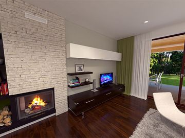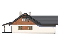 Graficzne opracowanie rzutów poglądowych widocznych na karcie projektu zostało wykonane przez Extradom.pl. Prezentowane przez Extradom.pl wizualizacje wykonane zostały przez autora projektu i należy poczytywać je jedynie za przykład i propozycję wykończenia, wizję architektoniczną autora projektu. Ostateczne wykończenie budynku może nastąpić na wiele sposobów. Szczegółowe rozwiązania zastosowane w oferowanej dokumentacji - w tym również ilość, lokalizacje i wygląd okien, drzwi, kominów - mogą w niewielkim stopniu różnić się od prezentowanej wizualizacji budynku.
