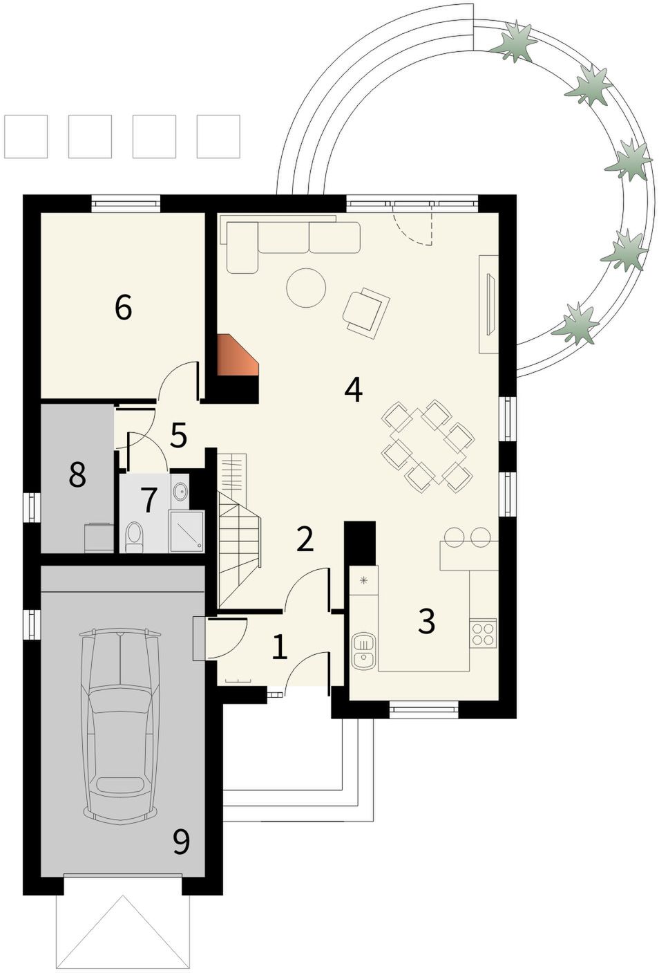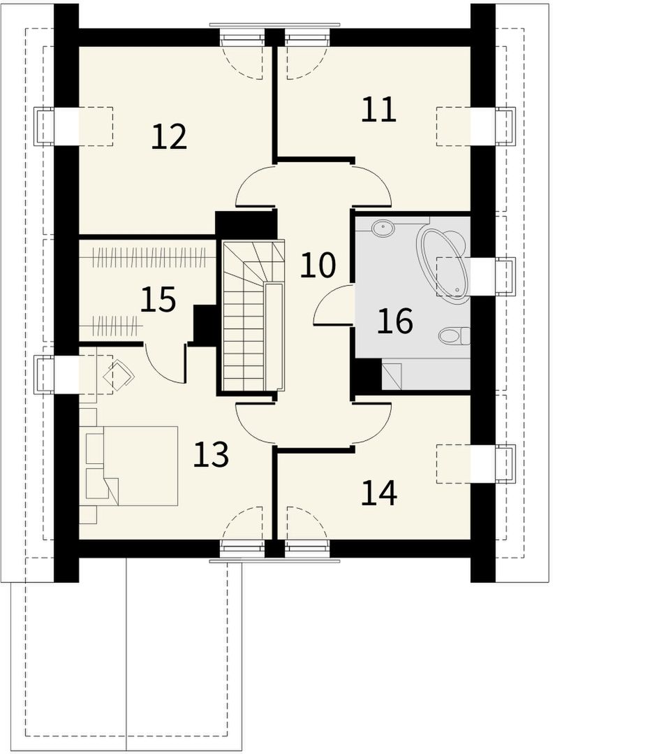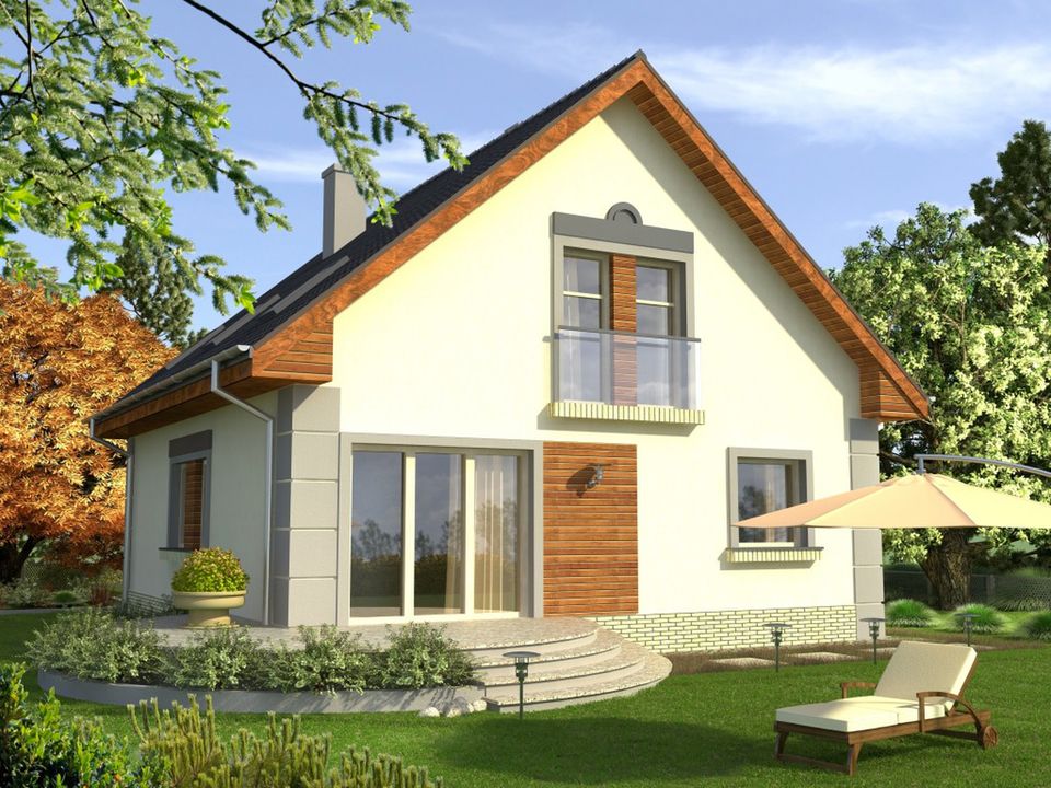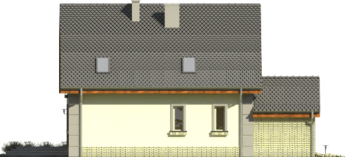 Graficzne opracowanie rzutów poglądowych widocznych na karcie projektu zostało wykonane przez Extradom.pl. Prezentowane przez Extradom.pl wizualizacje wykonane zostały przez autora projektu i należy poczytywać je jedynie za przykład i propozycję wykończenia, wizję architektoniczną autora projektu. Ostateczne wykończenie budynku może nastąpić na wiele sposobów. Szczegółowe rozwiązania zastosowane w oferowanej dokumentacji - w tym również ilość, lokalizacje i wygląd okien, drzwi, kominów - mogą w niewielkim stopniu różnić się od prezentowanej wizualizacji budynku.